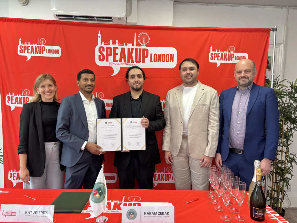 International Kingdom ได้เข้าพบและลงนามบันทึกข้อตกลงความร่วมมือทางวิชาการ ร่วมกับ Speak Up London สถาบันสอนภาษาอังกฤษชั้นนำในกรุงลอนดอน สหราชอาณาจักร โดยความร่วมมือในครั้งนี้มีเป้าหมายเพื่อส่งเสริมโอกาสด้านการศึกษา การพัฒนาภาวะผู้นำ การแลกเปลี่ยนวัฒนธรรม และการพัฒนาทักษะภาษาอังกฤษให้กับผู้เข้าร่วมโครงการในระดับนานาชาติ